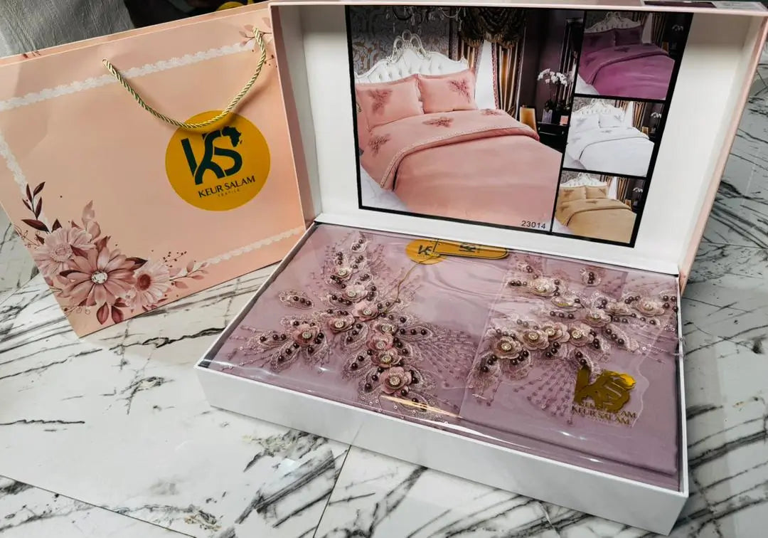 Chaque pièce est soigneusement brodée, décorée de perles délicates et d’un motif floral lumineux qui apporte classe, douceur et élégance à votre lit.